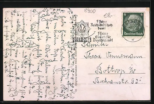 alte Ansichtskarte, gelaufen 1938, Stempelspur, Abriebspur oben li., guter Zustand