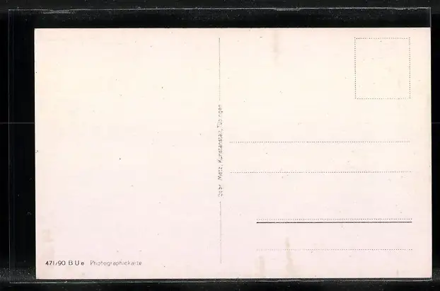 Personenbezogene Daten auf der Rückseite der Karte wurden durch blauen Textmarker unkenntlich gemacht. Die blauen Stellen sind auf die Vorderseite durchgeweicht und wirken sich negativ auf das Postkartenfoto aus