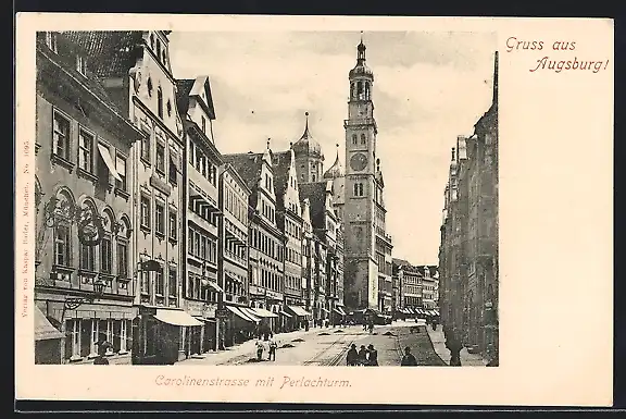 AK Augsburg, Carolinenstrasse mit Perlachturm