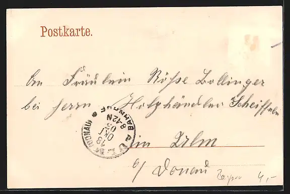alte Ansichtskarte, gelaufen 1903, Briefmarke entfernt, rückseitig Oberflächenschaden, guter Zustand