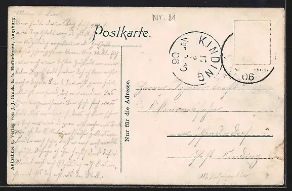 alte Ansichtskarte, gelaufen, Briefmarke entfernt, rückseitig Oberflächenschaden, guter Zustand