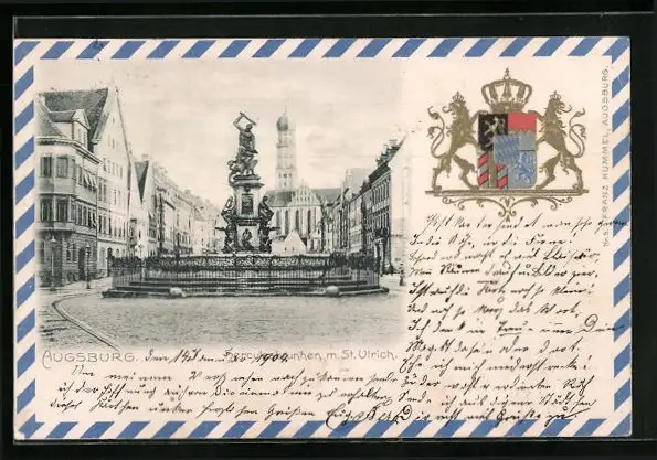AK Augsburg, Herculesbrunnen m. St. Ulrich, Wappen