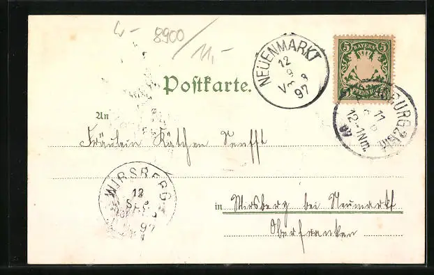 alte Ansichtskarte, gelaufen 1897, guter Zustand