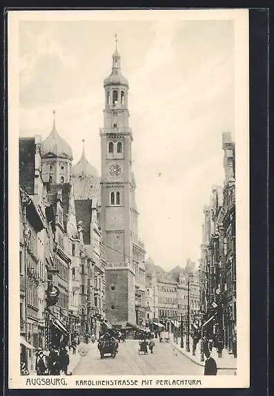 AK Augsburg, Karolinenstrasse mit Perlachturm