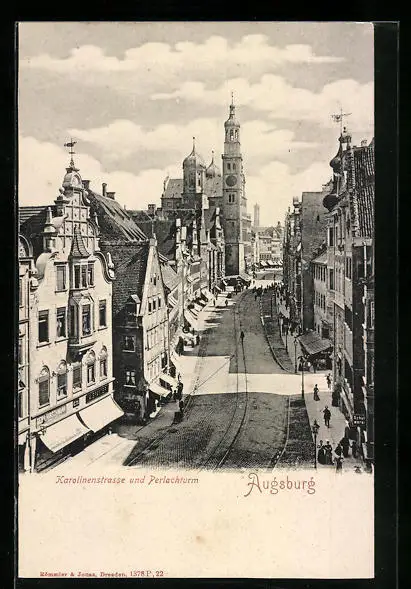 AK Augsburg, Karolinenstrasse und Perlachturm