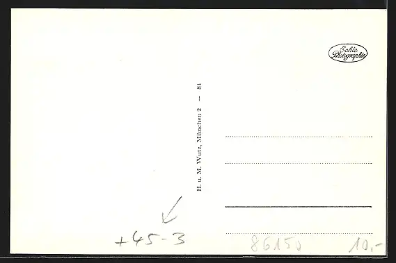 Personenbezogene Daten auf der Rückseite der Karte wurden durch blauen Textmarker unkenntlich gemacht. Die blauen Stellen sind auf die Vorderseite durchgeweicht und wirken sich negativ auf das Postkartenfoto aus