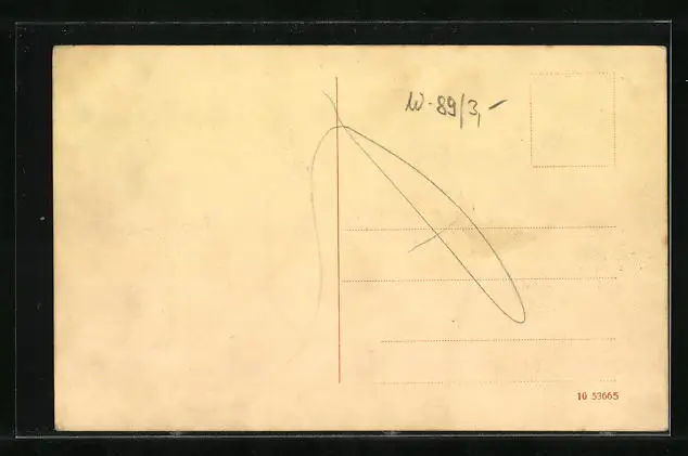 Personenbezogene Daten auf der Rückseite der Karte wurden durch blauen Textmarker unkenntlich gemacht. Die blauen Stellen sind auf die Vorderseite durchgeweicht und wirken sich negativ auf das Postkartenfoto aus