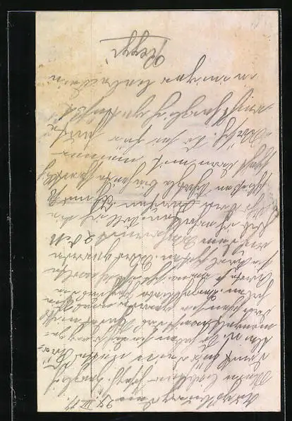 Personenbezogene Daten auf der Rückseite der Karte wurden durch blauen Textmarker unkenntlich gemacht. Die blauen Stellen sind auf die Vorderseite durchgeweicht und wirken sich negativ auf das Postkartenfoto aus