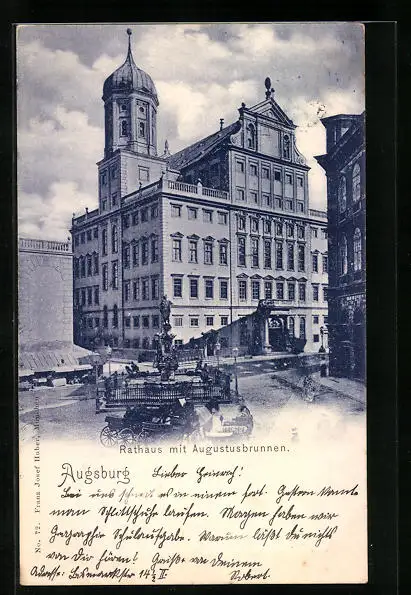 AK Augsburg, Rathaus mit Augustusbrunnen