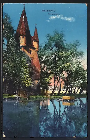 AK Augsburg, Uferpartie beim Fünfgratturm
