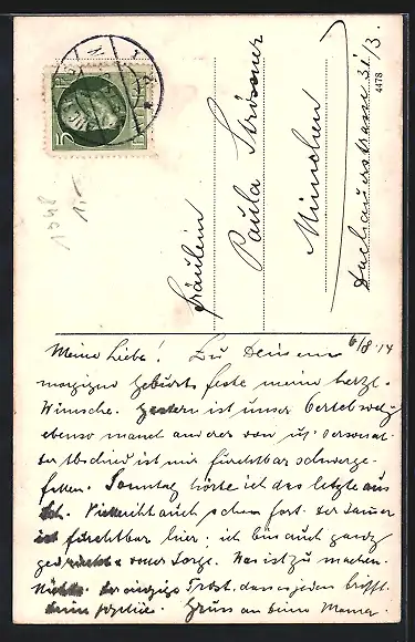 alte Ansichtskarte, gelaufen 1914, guter Zustand
