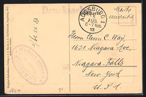 alte Ansichtskarte, gelaufen 1913, Eckknick re. oben, Albumspuren, guter Zustand