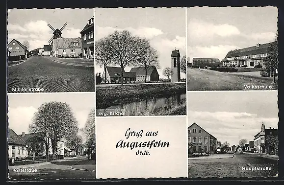 AK Augustfehn /Oldb., Mühlenstrasse, Poststrasse, Hauptstrasse