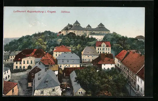 AK Augustusburg i. Erzgeb., Blick von der Stadt auf das Schloss