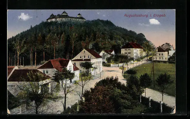 AK Augustusburg i. Erzgeb., Teilansicht mit Blick zur Burg