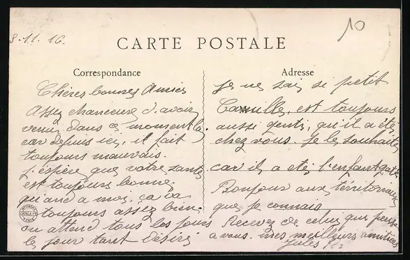 Personenbezogene Daten auf der Rückseite der Karte wurden durch blauen Textmarker unkenntlich gemacht. Die blauen Stellen sind auf die Vorderseite durchgeweicht und wirken sich negativ auf das Postkartenfoto aus