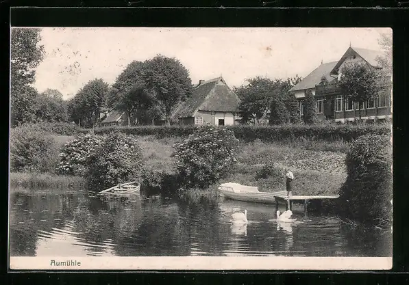 AK Aumühle, Uferpartie mit Boot und Jungen