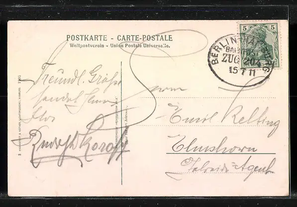 alte Ansichtskarte, gelaufen 1911, Stempelspur, guter Zustand