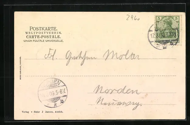 alte Ansichtskarte, gelaufen 1906, guter Zustand