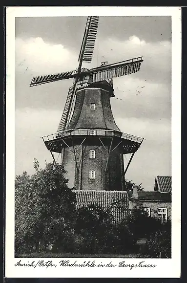 AK Aurich /Ostfr., Windmühle in der Georgstrasse