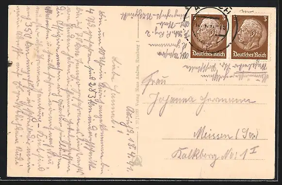 alte Ansichtskarte, gelaufen, Bugspuren unten li. und re. und re. oben, guter Zustand