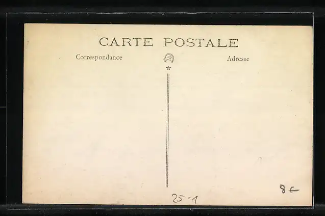 Personenbezogene Daten auf der Rückseite der Karte wurden durch blauen Textmarker unkenntlich gemacht. Die blauen Stellen sind auf die Vorderseite durchgeweicht und wirken sich negativ auf das Postkartenfoto aus