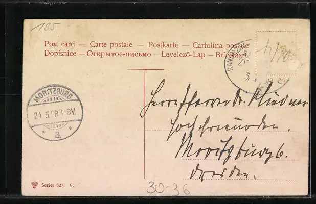 alte Ansichtskarte, gelaufen, Briefmarke entfernt, guter Zustand