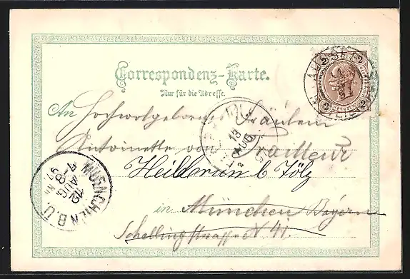 gelaufen 1897, Eckknick li. oben, Bugspur re. unten, guter Zustand