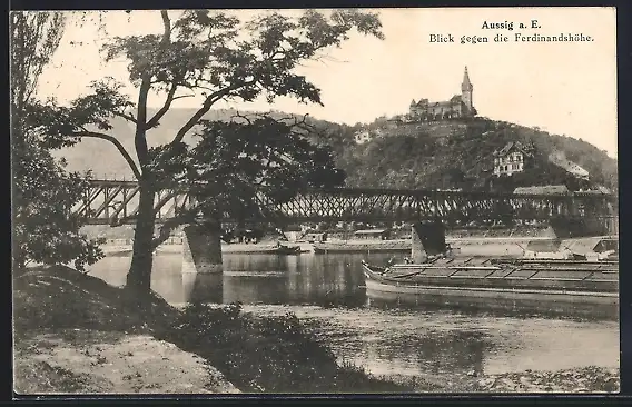 AK Aussig / Usti, Blick gegen die Ferdinandshöhe