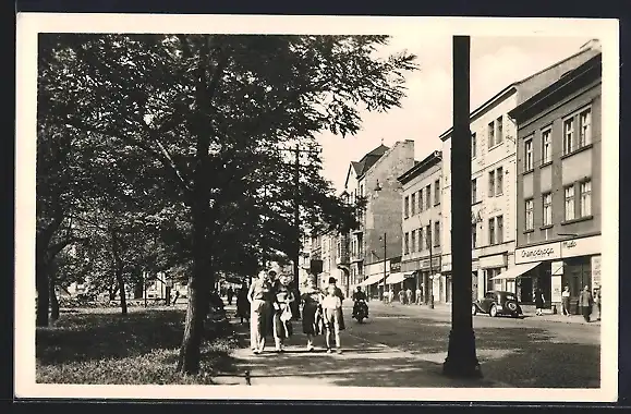 Personenbezogene Daten auf der Rückseite der Karte wurden durch blauen Textmarker unkenntlich gemacht. Die blauen Stellen sind auf die Vorderseite durchgeweicht und wirken sich negativ auf das Postkartenfoto aus