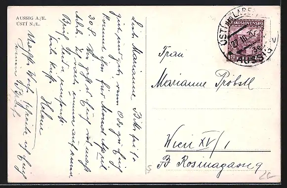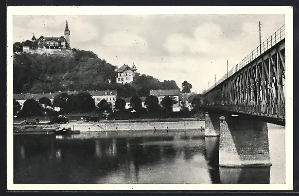 AK Aussig / Usti, Ortsansicht mit Brücke