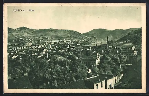 AK Aussig / Usti, Totalansicht aus der Vogelschau