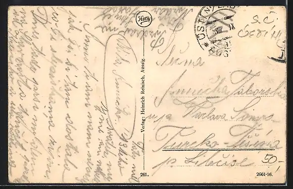 alte Ansichtskarte, gelaufen, Briefmarke entfernt, guter Zustand