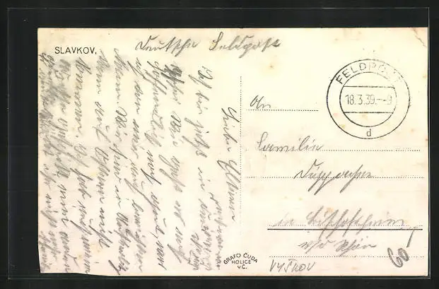 alte Ansichtskarte, gelaufen 1939 als Feldpost, Eckknick oben li., Karte unten und rechts beschnitten, guter Zustand