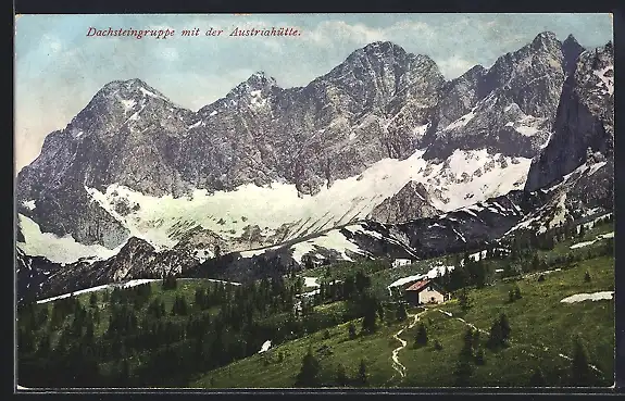 AK Austriahütte, Berghütte mit der Dachsteingruppe
