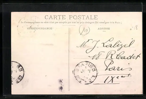 Personenbezogene Daten auf der Rückseite der Karte wurden durch blauen Textmarker unkenntlich gemacht. Die blauen Stellen sind auf die Vorderseite durchgeweicht und wirken sich negativ auf das Postkartenfoto aus