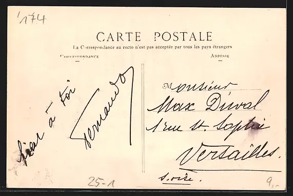 Personenbezogene Daten auf der Rückseite der Karte wurden durch blauen Textmarker unkenntlich gemacht. Die blauen Stellen sind auf die Vorderseite durchgeweicht und wirken sich negativ auf das Postkartenfoto aus