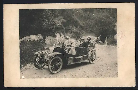 AK Auto auf einer Bergstrasse, darin männer und Frauen