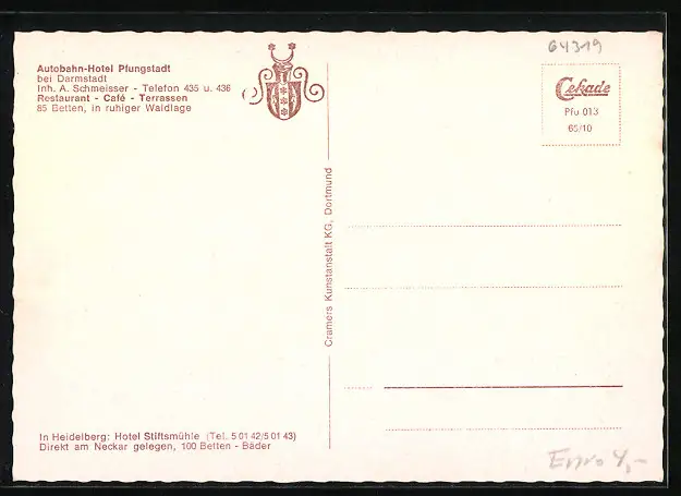 Personenbezogene Daten auf der Rückseite der Karte wurden durch blauen Textmarker unkenntlich gemacht. Die blauen Stellen sind auf die Vorderseite durchgeweicht und wirken sich negativ auf das Postkartenfoto aus
