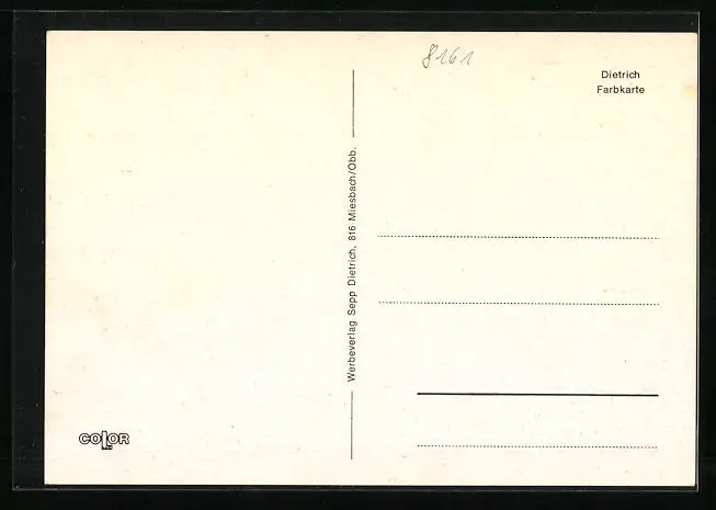 Personenbezogene Daten auf der Rückseite der Karte wurden durch blauen Textmarker unkenntlich gemacht. Die blauen Stellen sind auf die Vorderseite durchgeweicht und wirken sich negativ auf das Postkartenfoto aus