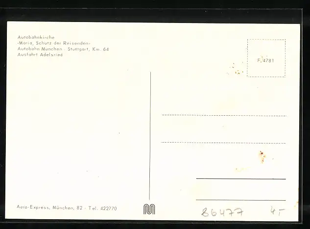 AK Autobahnkirche Maria, Schutz der Reisenden, Ausfahrt Adelsried