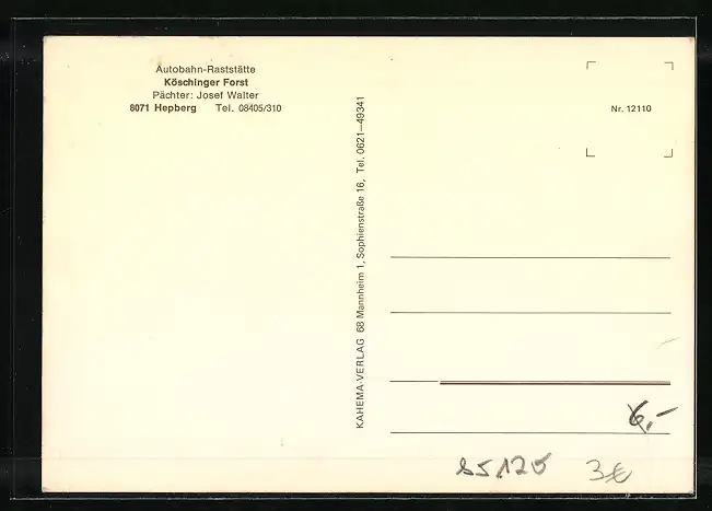 Personenbezogene Daten auf der Rückseite der Karte wurden durch blauen Textmarker unkenntlich gemacht. Die blauen Stellen sind auf die Vorderseite durchgeweicht und wirken sich negativ auf das Postkartenfoto aus