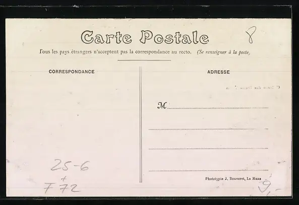 Personenbezogene Daten auf der Rückseite der Karte wurden durch blauen Textmarker unkenntlich gemacht. Die blauen Stellen sind auf die Vorderseite durchgeweicht und wirken sich negativ auf das Postkartenfoto aus