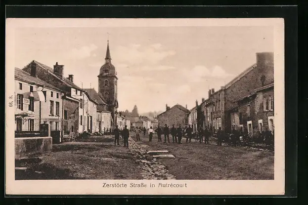 AK Autrecourt, Soldaten auf der zerstörten Strasse