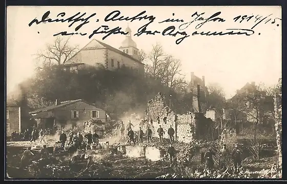 AK Autry, Blick auf die durch die Beschiessung zerstörte Häuser