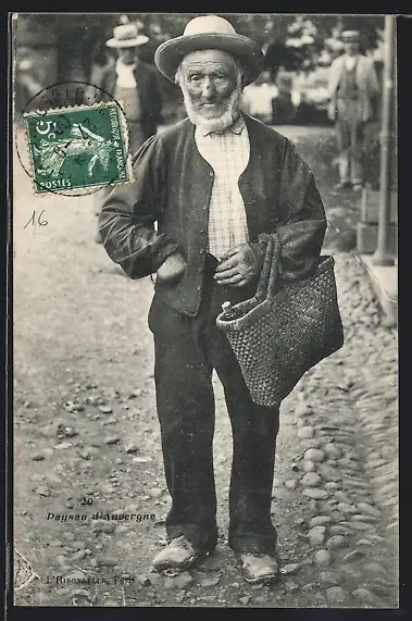 AK Auvergne, Alter Mann auf dem Weg zum Markt