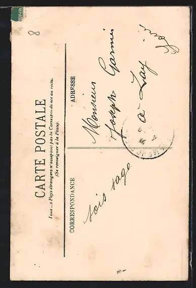 Personenbezogene Daten auf der Rückseite der Karte wurden durch blauen Textmarker unkenntlich gemacht. Die blauen Stellen sind auf die Vorderseite durchgeweicht und wirken sich negativ auf das Postkartenfoto aus