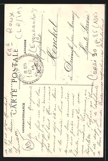 Personenbezogene Daten auf der Rückseite der Karte wurden durch blauen Textmarker unkenntlich gemacht. Die blauen Stellen sind auf die Vorderseite durchgeweicht und wirken sich negativ auf das Postkartenfoto aus