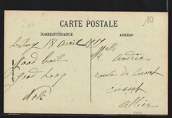 Personenbezogene Daten auf der Rückseite der Karte wurden durch blauen Textmarker unkenntlich gemacht. Die blauen Stellen sind auf die Vorderseite durchgeweicht und wirken sich negativ auf das Postkartenfoto aus