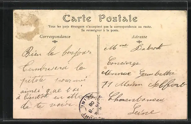 gelaufen 1908, rückseitig Oberflächenschaden, guter Zustand